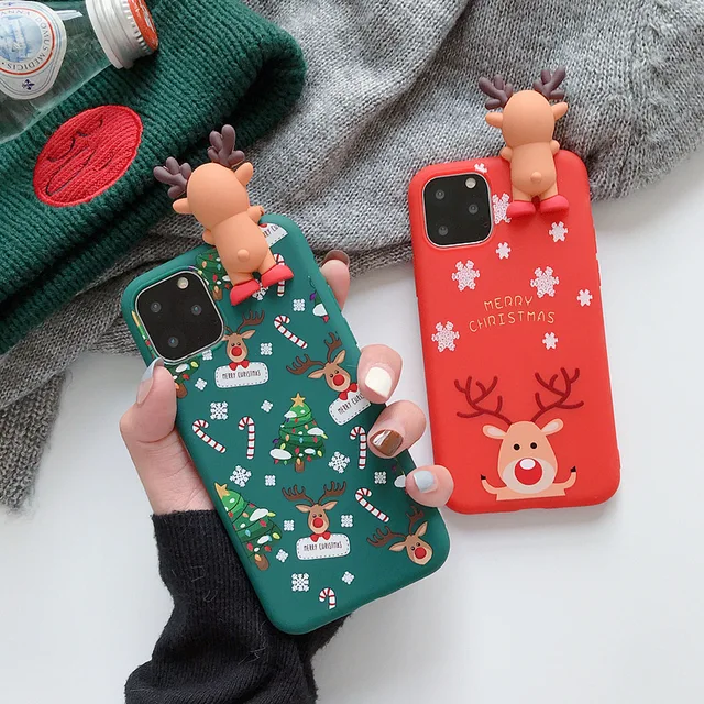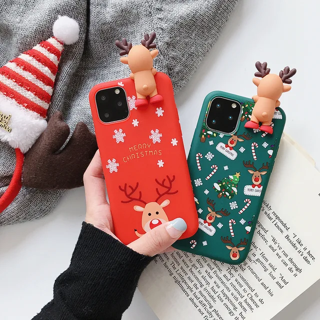 Christmas Cartoon Soft Case For iPhone 11 Pro Max XR X XS 7 8 6S Plus Case 3D Cute Silicone Phone Cover